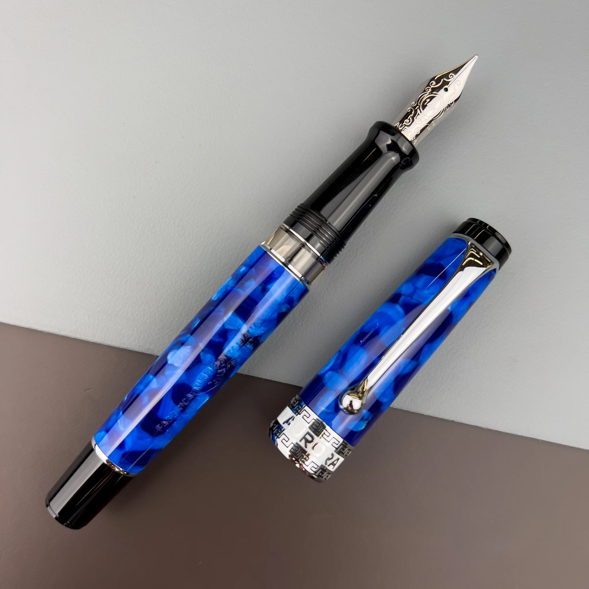 The cap and barrel in all versions are made of marbled Auroloide, an antique material, yet refined and prestigious.