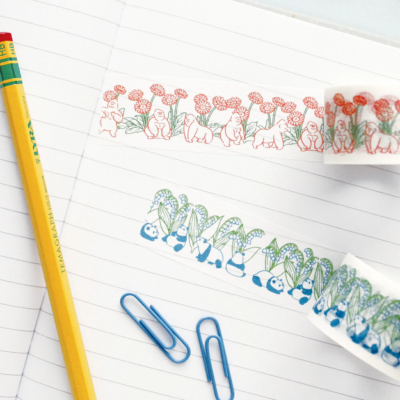 This gorgeous masking tape features endless flower fields. Its wide design makes it perfect for decorating planners and notebooks, wrapping paper, and more. This is a series in which tiny animals explore flower fields.