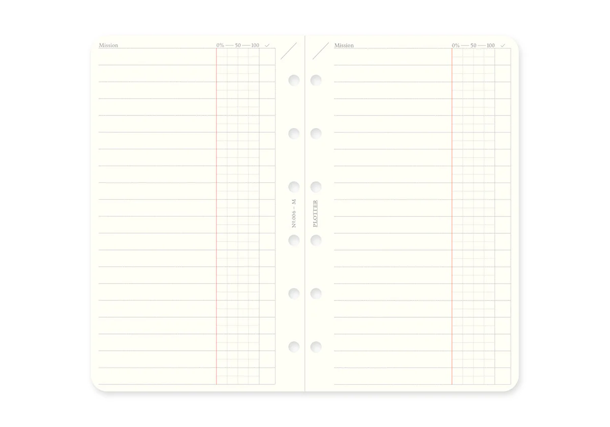 A simple to-do list designed for task management at a glance. Keep tabs on your tasks by utilizing the progress bar with four levels of completion. Visualization of your progress helps you keep track of your priorities. The Refill Memo Pad is made of PLOTTER original refill paper that is thin but strong and tear-resistant. You can enjoy a variety of writing tools such as pens or fountain pen inks on this paper without feathering and bleed-through.